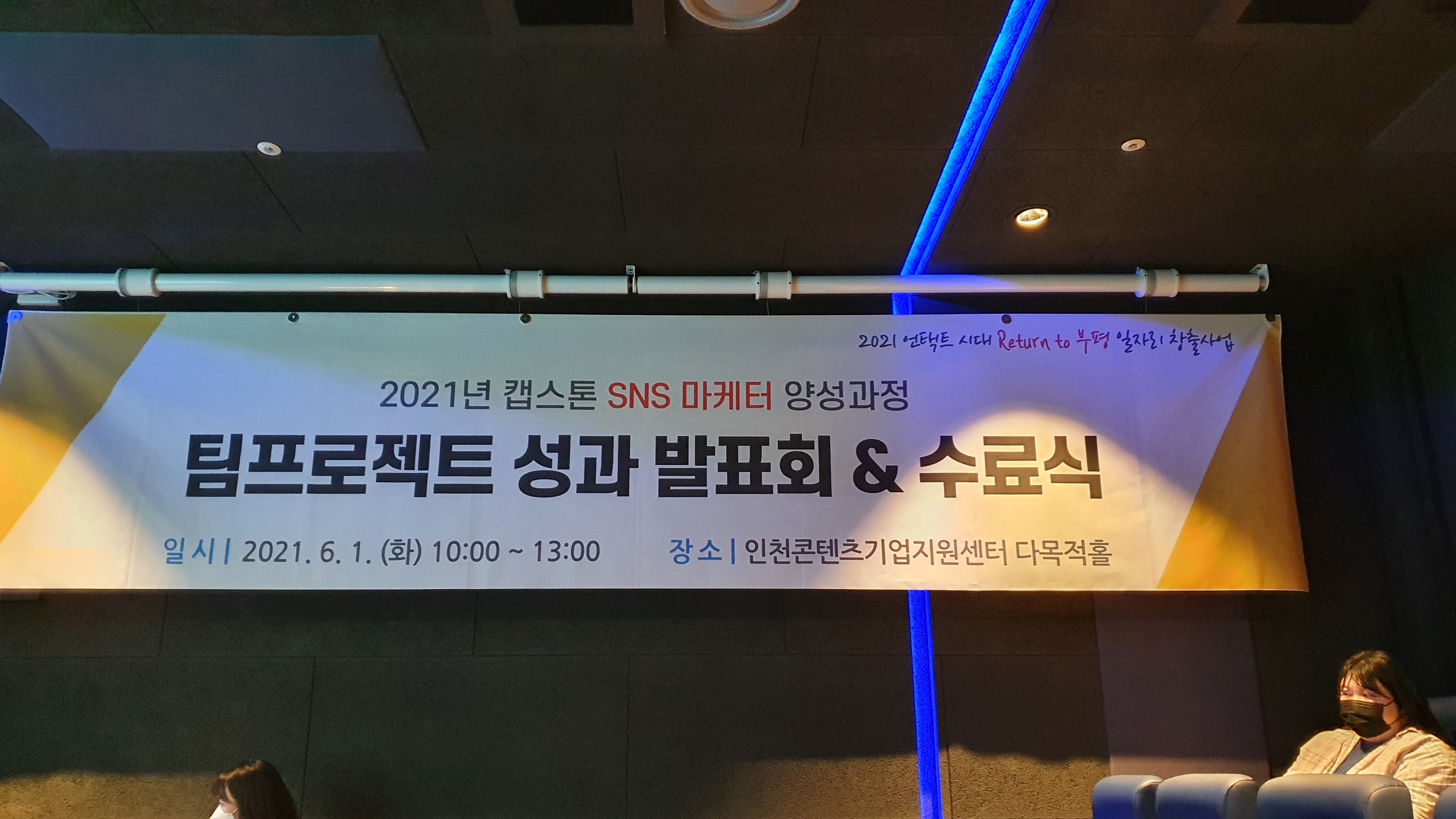 우연한 계기로 오현주 박사님과 고용과 미래를 알게되어 인천에서 열리는 '캡스톤 SNS 마케터 양성과정 성과발표회 & 수료식'에 심사위원으로 참가하였다.
